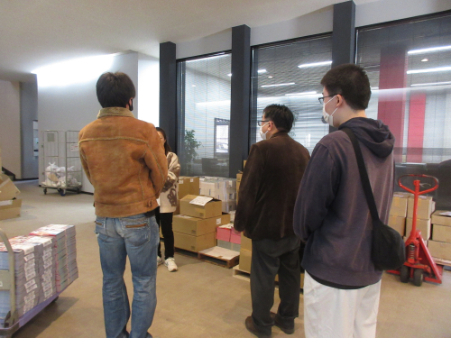その後、今回はチラシ・フリーペーパーの仕分け業務を見学させていただきました。